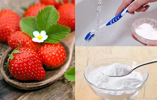 - Làm mềm bải chải bằng cách nhúng vào bát nước ấm rồi nhúng bàn chải vào hỗn hợp dâu và baking soda rồi đánh răng như bình thường trong vòng 2 phút.- Khi đánh răng chú ý chải đều sao cho hỗn hợp chạm tới tất cả các ngóc ngách trên răng. Hỗn hợp chạm tới đâu răng sáng tới đó.