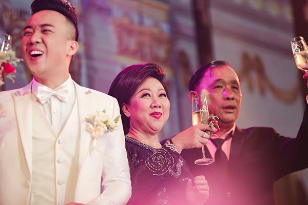 Khi ai cũng đã có rượu mừng trên tay, Trấn Thành tiếp tục cười khoái chí.