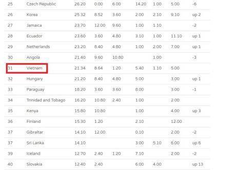 VBF-Vừa qua với sự tham gia của các người đẹp tại các cuộc thi sắc đẹp thế giới đã giúp cho VN tăng vuợt bậc. Hiện VN đang xếp ở vị trí thứ 31 trong bảng xếp hàng. Thành tích này là cao nhất trong 14 năm nay.