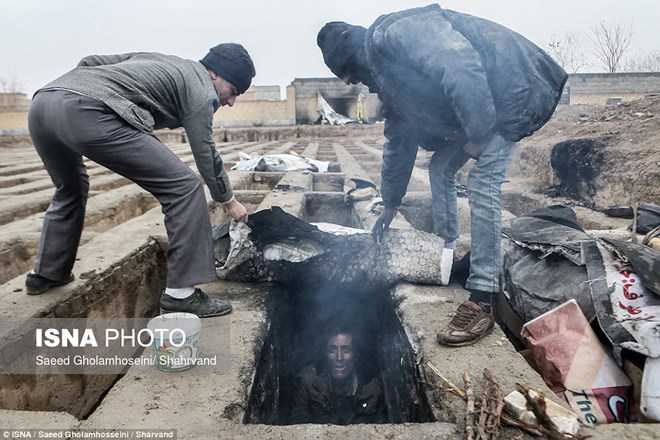 Bạn hẳn sẽ rợn người khi chứng kiến những người vô gia cư ở Iran lại sống ở nơi này. Đó là những ngôi mộ ở ngoại ô thủ đô Tehran. Trong thời tiết giá lạnh với nhiều xú khí thì không hiểu sao họ thế lấy nơi đây là "nhà"?