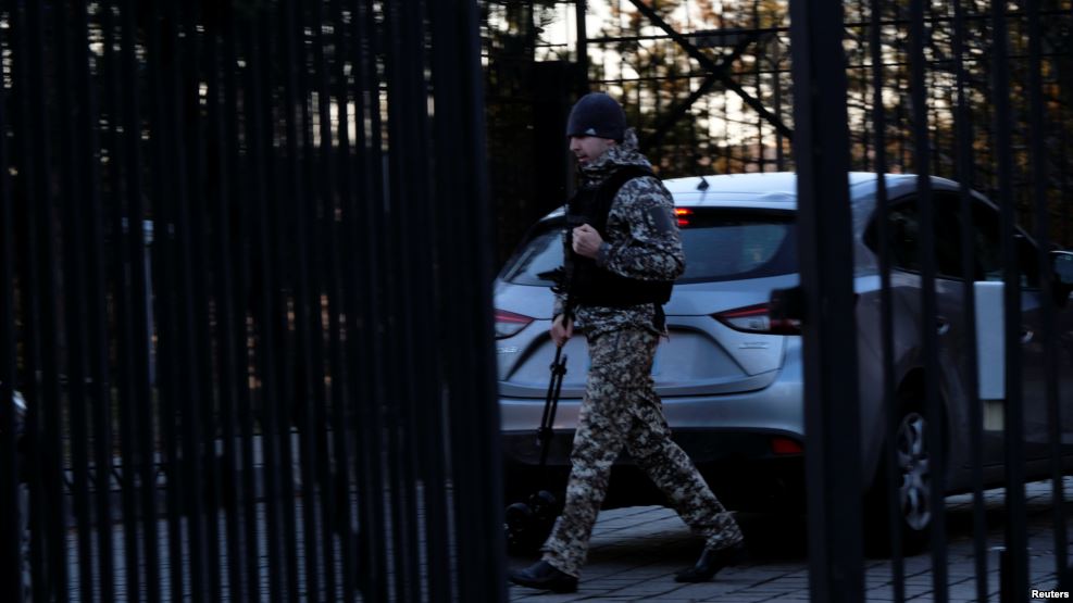 Một người lính gác kiểm tra những chiếc xe đi vào Đại sứ quan Nga tại Washington, ngày 29 tháng 12 năm 2016.