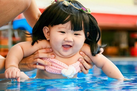 Bộ hình được chụp tại một bể bơi ở thành phố Hồ Chí Minh – nơi bé Khả Di chào đời.