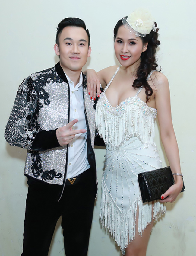 Ca sĩ Quang Lê tình cảm ôm eo Minh Thư chụp ảnh kỷ niệm.