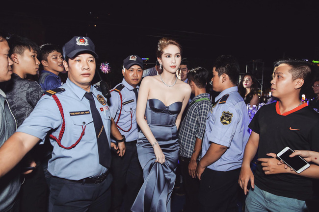 Trong sự kiện tối qua, người đẹp chọn bộ váy ôm sát. Trong quá trình di chuyển khó khăn đã khiến cho vòng hai lộ ra một số khuyết điểm.