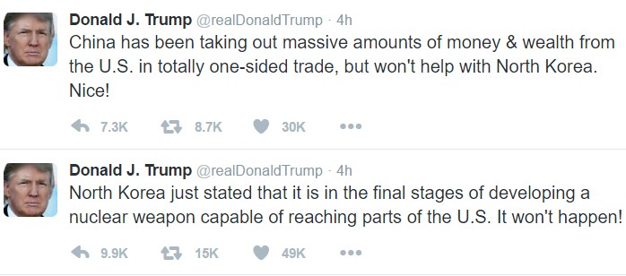 Old  Default Ông Trump tố cáo Trung quốc sau tuyên bố ngang ngược của Triều Tiên