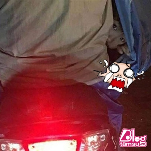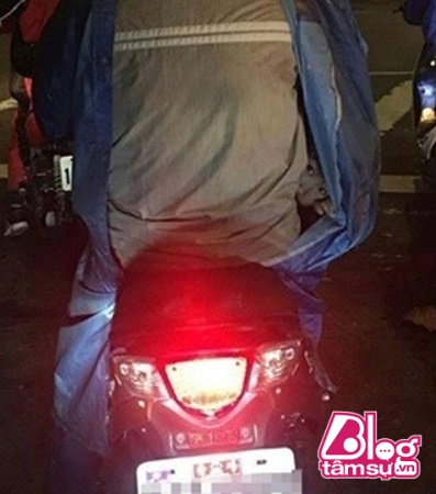 Trời ơi, trong vạt áo của người đàn ông đi xe máy có thứ gì kìa?