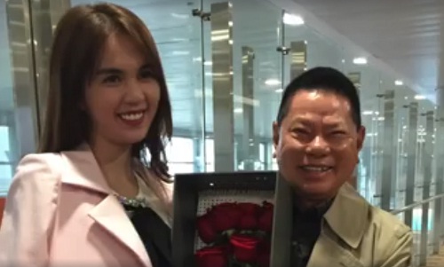 Gần đây nhất, tỷ phú gốc Việt khoe clip ghi lại khoảnh khắc ông tặng hoa, ôm eo "nữ hoàng nội y" tại sân bay Thượng Hải chào mừng bạn gái đến Trung Quốc kèm lời chú thích có cánh: "Nàng đã đến Thượng Hải. Ở nơi đâu cũng có người mến mộ”.