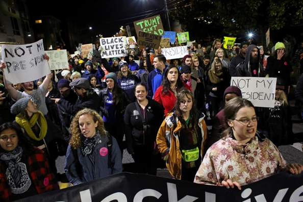 Sau một chiến dịch tranh cử gây chia rẽ sâu sắc, chiến thắng bất ngờ của Donald Trump trong cuộc bầu cử ngày 8/11/2016 đã làm bùng lên những phản ứng mang màu sắc chính trị đối lập.