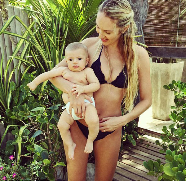 Trong bức ảnh, Candice rạng rỡ bế con trai nhỏ đi bơi và tắm nắng tại một resort bên biển. Bé Anaca 3 tháng tuổi rất bụ bẫm và cứng cáp. Cậu bé là con đầu lòng của thiên thần nội y và bạn trai - người mẫu Brazil, Hermann Nicoli.