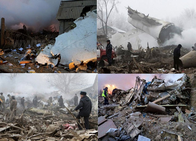 Vietbf.com - Những mảnh vỡ rải rác trên các nóc nhà gần sân bay ở Kyrgyzstan, mà vừa xảy ra cho chiếc máy bay Boeing 747 của Thổ Nhĩ Kỳ đã rơi xuống khu đông dân cư gần sân bay quốc tế Manas , khiến phi cơ quét vài trăm mét qua ngôi làng, làm ít nhất 32 người chết, với hơn 15 ngôi nhà bị hư hại. Việc cứu hộ đang gặp một vài khó khăn vì điều kiện thời tiết đầy sương mù, gây khó khăn trong việc tìm kiếm và tái thiết khu vực. Được biết, con số thương vong có thể tăng lên trong thời gian tới.