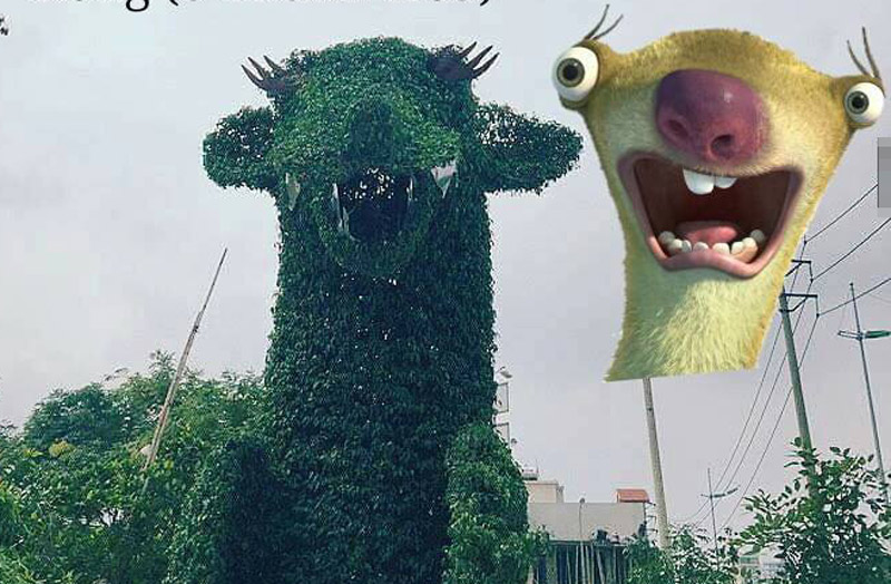 Nhiều người cho rằng, đầu con rồng giống với đầu của chú lười Sid trong phim hoạt hình "Kỷ băng hà" (Ice Age). Sau đó, trên mạng xã hội xuất hiện bức hình ghép đầu con rồng và chú lười Sid để so sánh.