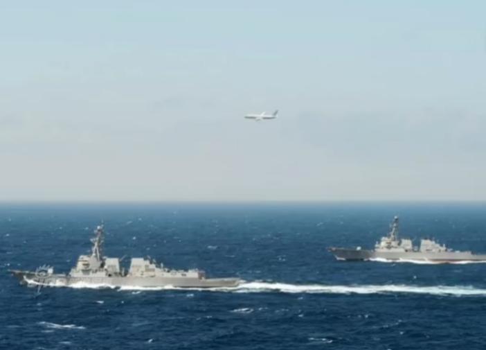 Tàu chiến mặt nước Trung Quốc ở Ấn Độ Dương bị máy bay săn ngầm Mỹ chụp được. Ảnh: Sina