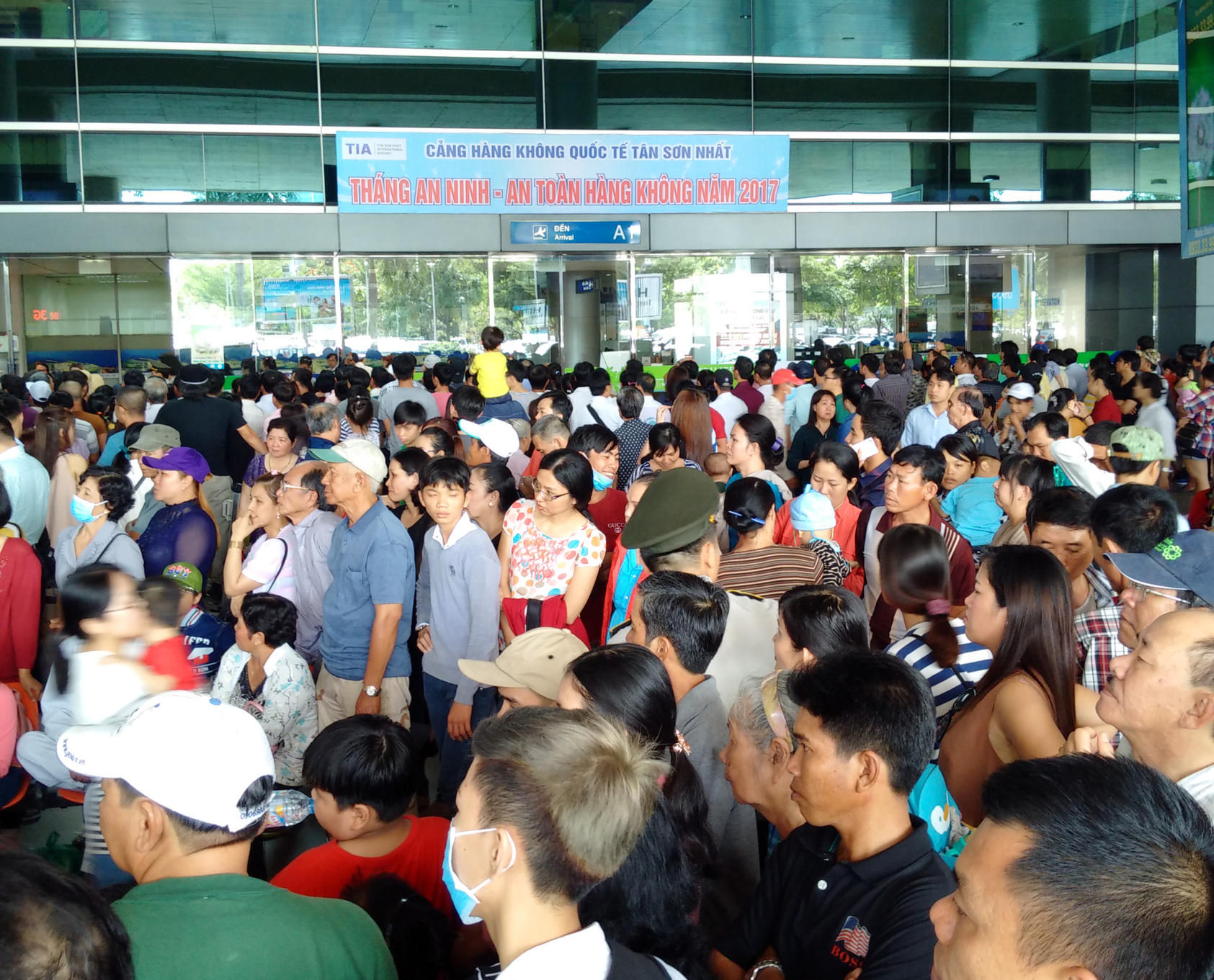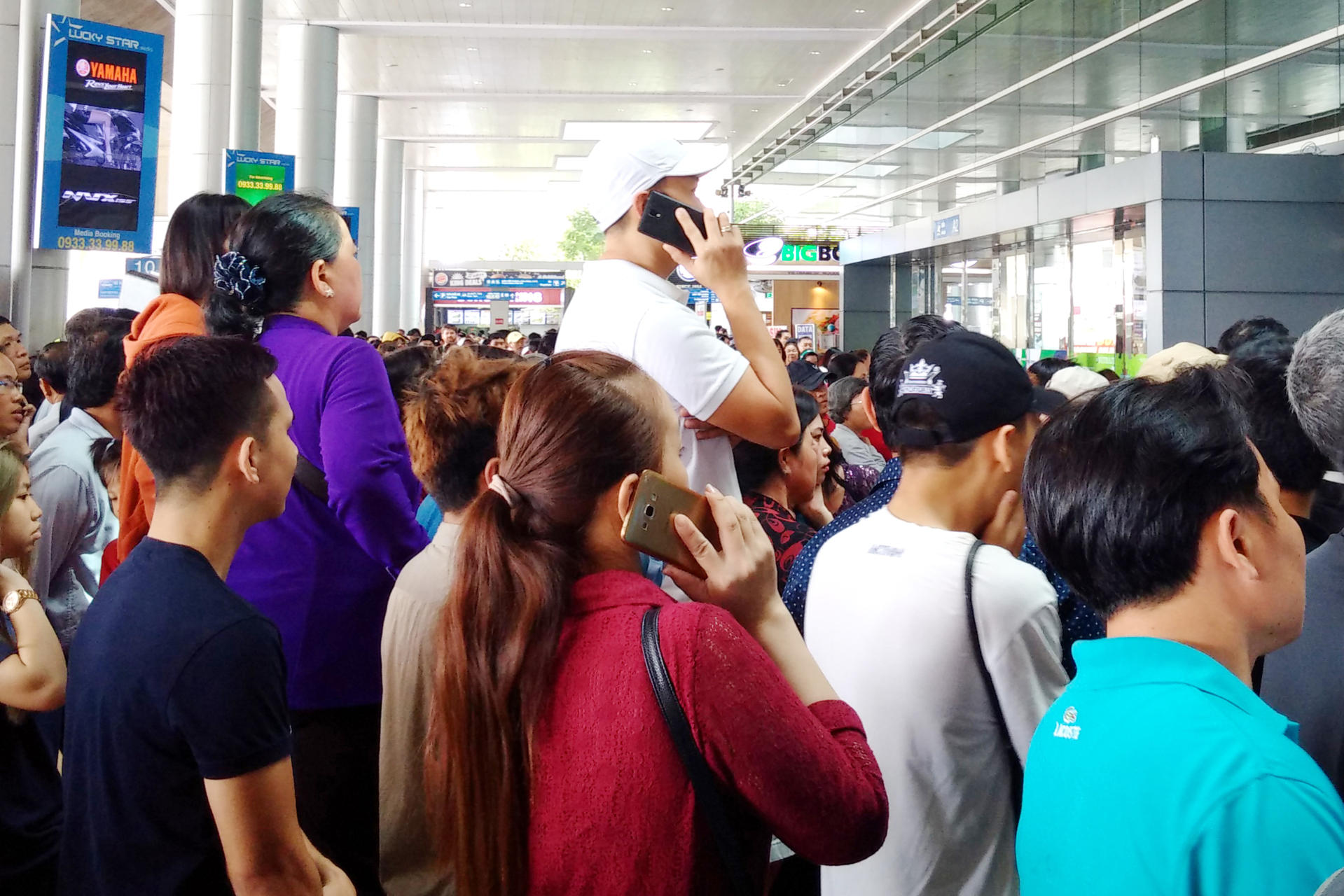 Chúng tôi có mặt tại ga quốc tế giữa trưa ngày 17 Tháng Giêng, tức 20 tháng Chạp. Suốt từ 10 giờ sáng cho đến 2 giờ chiều, khu vực ga quốc tế luôn đông nghẹt người. Nhiều người chờ gần 3 tiếng rồi mà vẫn chưa gặp được người thân là Việt kiều cần đón.