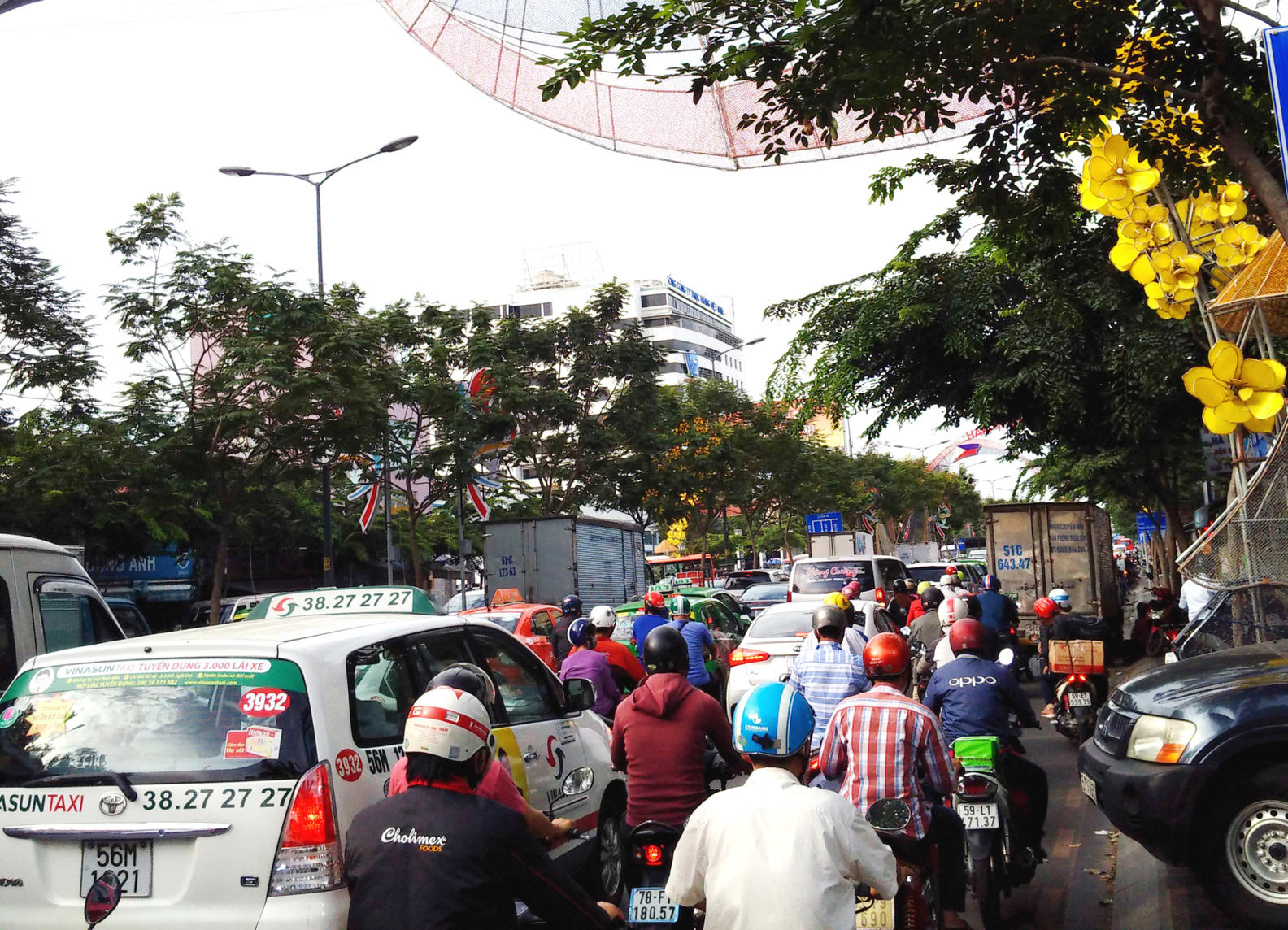Anh Cường, một tài xế hãng taxi Mai Linh, cho hay: “Kẹt cả trong lẫn ngoài rồi. Giờ đón được khách mà đi ra ngoài cũng gay go, có khi mất cả tiếng mới bò ra được.”