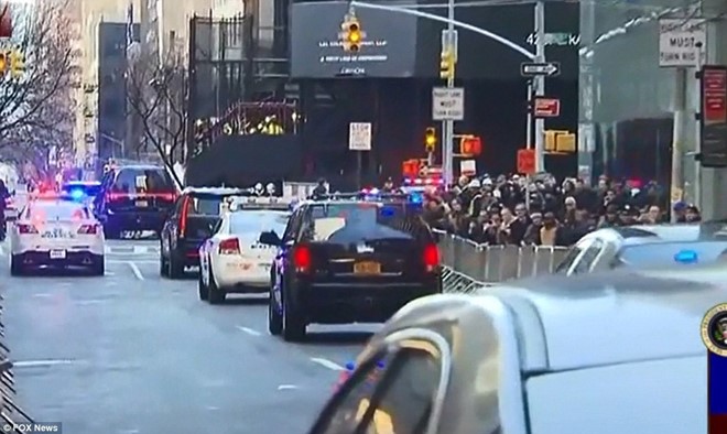 Đoàn xe chở ông Trump rời khỏi tòa nhà Trump Tower để đến sân bay LaGuardia vào trưa 19/1. Ảnh: Fox News.