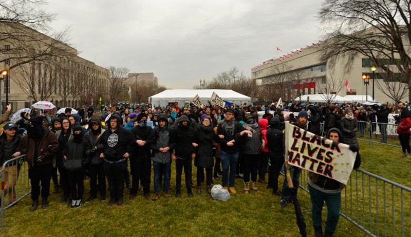 Cách không xa Nhà Trắng, một nhóm biểu tình còn đụng độ với lực lượng an ninh. Trước đó, các nhà hoạt động mang tên Disrupt J20 còn chặn đường tới các trạm kiểm soát. Theo nhà tổ chức của nhóm biểu tình Disrupt J20, ông Alli McCracken (28 tuổi), hành động của họ là nhằm phản đối những tuyên bố gây tranh cãi của ông Trump về phụ nữ, người di cư trái phép và người Hồi giáo.