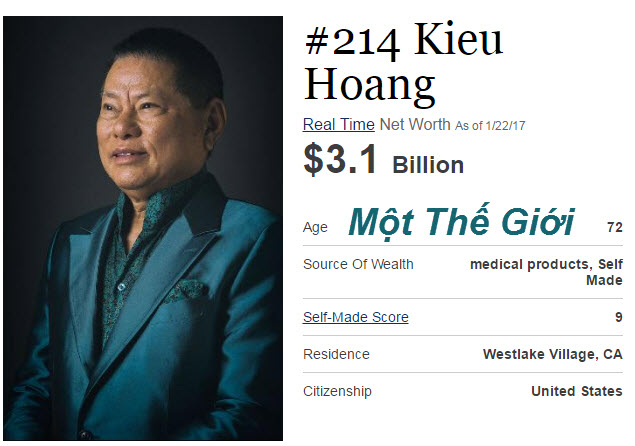 Ngày 12.12.2016, tỷ phú Hoàng Kiều chỉ có 2,8 tỉ USD.