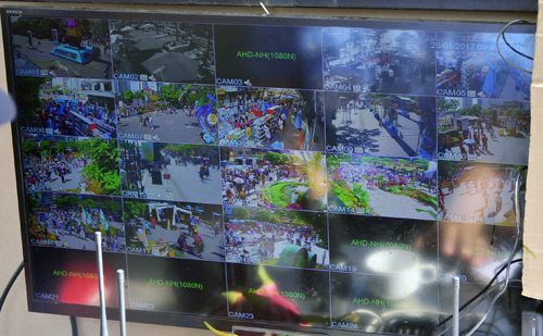 Màn hình camera theo dõi ở đường hoa Nguyễn Huệ. Ảnh: A.X