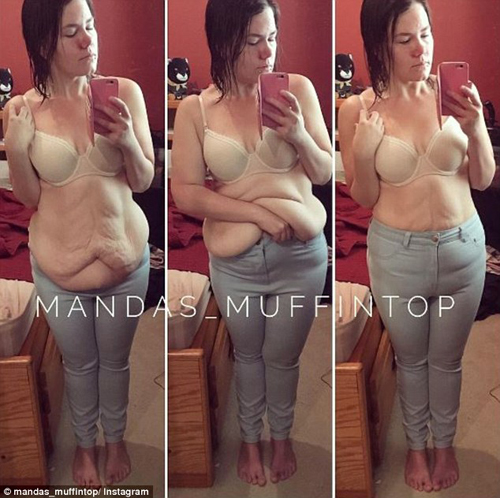 Chiếc bụng chảy xệ khiến Amanda gặp nhiều khó khăn trong sinh hoạt.