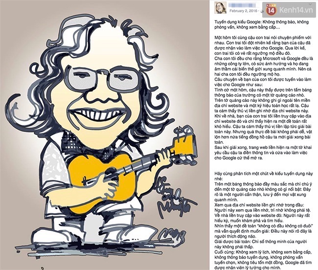 Được chia sẻ bởi một tài khoản trên Facebook có tên M.T, anh cho biết cậu con trai của mình đột nhiên kể lại câu chuyện người bạn được nhận vào làm cho Google nhưng mọi sự việc diễn ra rất lạ lẫm và bất ngờ.