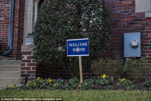 Những hình ảnh được ghi nhận xung quanh khu vực căn biệt thự nơi gia đình ông Obama sẽ ở cho thấy đoàn xe hộ tống cùng những tấm biển "Chào mừng về nhà" được cắm trên những bãi cỏ khu vực hàng xóm nhà ông Obama.