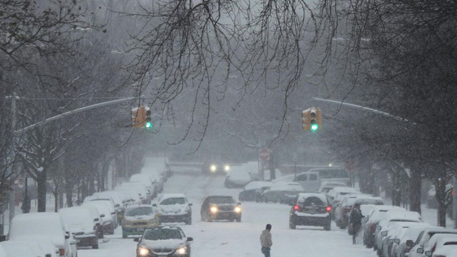 Tuyết phủ dầy trên đường phố New York.