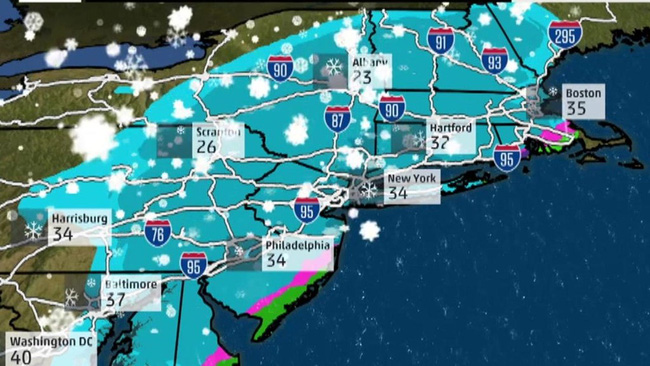 Cơ quan khí tượng Mỹ cho biết, bão tuyết di chuyển nhanh chóng khắp các khu vực phía Đông Bắc nước Mỹ, trải dài từ bang Pennsylvania đến Maine, kéo nền nhiệt độ đột ngột giảm mạnh. Mật độ tuyết rơi trung bình là 10cm/giờ và tốc độ gió là 80km/giờ.