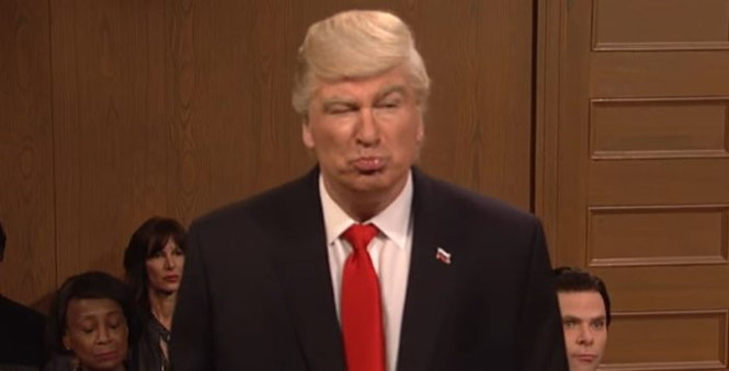 Baldwin là người chuyên hóa trang làm ông Trump, đem ông ra làm chủ đề tếu táo trong các chương trình hài Saturday Night Live trên Đài NBC.
