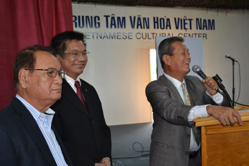 Ký giả Du Miên (bên phải) với bác sĩ Võ Trọng Nhi (bên trái) và ông Bùi Thế Phá trong hình chụp năm 2014. (Thanh Phong/ Viễn Đông)