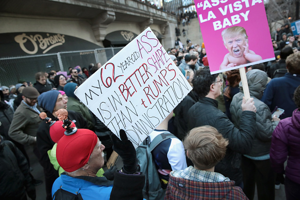 Người biểu tình tụ tập bên ngoài tòa nhà Trump Tower tại Chicago, Illinois. (Scott Olson/ Getty Images)