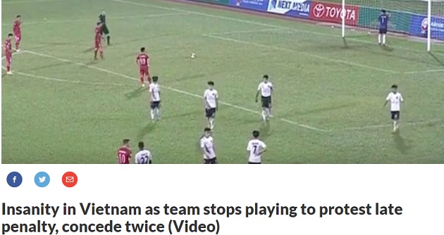 Tờ báo 101greatgoals cũng đăng tải lại clip và dùng những từ "kỳ lạ", "điên rồ" để kết luận, sau khi mô tả về sự cố đáng xấu hổ trên sân Thống Nhất.