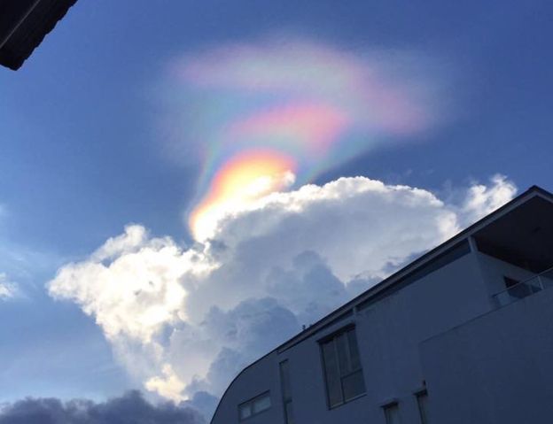 Truyền thông địa phương cho biết đây nhiều khả năng là một cầu vồng lửa, hiện tượng xảy ra khi ánh sáng mặt trời khúc xạ qua các đám mây tinh thể băng.