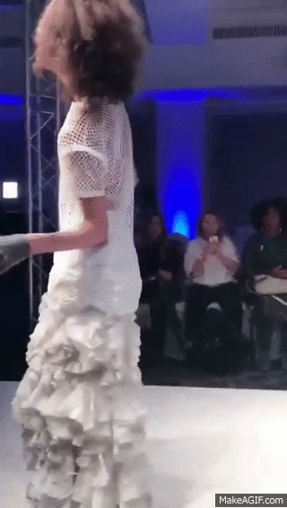 Chỉ catwalk không thôi chắc đã quá thường nên người mẫu này vừa đi vừa co giật theo đúng nghĩa đen. Lên đến đỉnh sân khấu, tưởng chừng màn biểu diễn đã đủ rồi thì nào ngờ người mẫu ngã vật ra khiến khán giả vô cùng hoảng hốt!