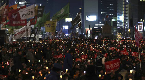 Ngày 25/2, hàng trăm nghìn người thuộc hai phe ủng hộ và phản đối Tổng thống Hàn Quốc đang bị luận tội Park Geun-Hye đã xuống đường biểu tình tại thủ đô Seoul. Khoảng 17.000 cảnh sát chống bạo động đã được huy động, dựng chướng ngại vật bằng xe buýt tại trung tâm thủ đô Seoul để tách phe ủng hộ với phe phản đối Tổng thống Park.