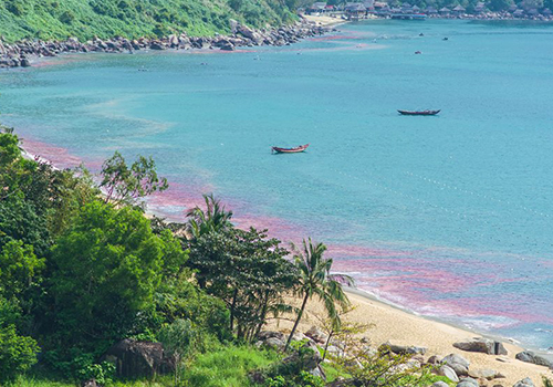 Trưa 24/2, trên trang Facebook Quản lý đô thị Đà Nẵng xuất hiện một số hình ảnh vệt nước biển có màu đỏ được chụp ở Bãi Nam, bán đảo Sơn Trà, thu hút nhiều ý kiến trái chiều. Sở Tài nguyên TP Đà Nẵng đã cử cán bộ túc trực 24/24 để lấy mẫu nước làm xét nghiệm.