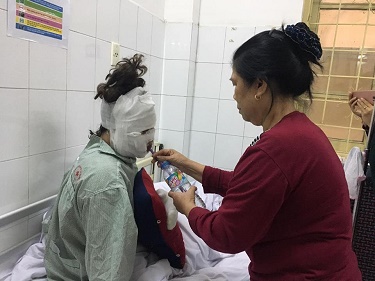 Bác sĩ Thống cho biết bệnh nhân nhập viện ngày 26-2 trong tình trạng sốc nhẹ do bỏng. Bệnh nhân bỏng rộng vùng mặt, tay nên đau, rát và hoảng loạn.