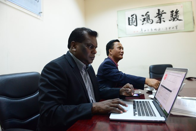 Luật sư Shanmugam trong buổi làm việc tại TP.HCM hôm nay. Ảnh: Thanh Tùng.