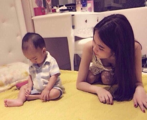 Mới đây nhất, cộng đồng mạng bất ngờ truyền nhau hình ảnh Ngọc Trinh đang chơi đùa cùng cháu trai. Tuy nhiên, sẽ không có gì đáng nói nếu như chị gái Ngọc Bích của cô không chụp em gái trong tư thế vô cùng khó hiểu đồng thời cũng khiến người đẹp suýt lộ vòng một.