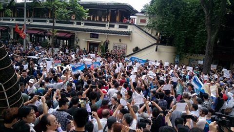 Một số đông người Việt tổ chức biểu tình trước nhà hát lớn Hà Nội.