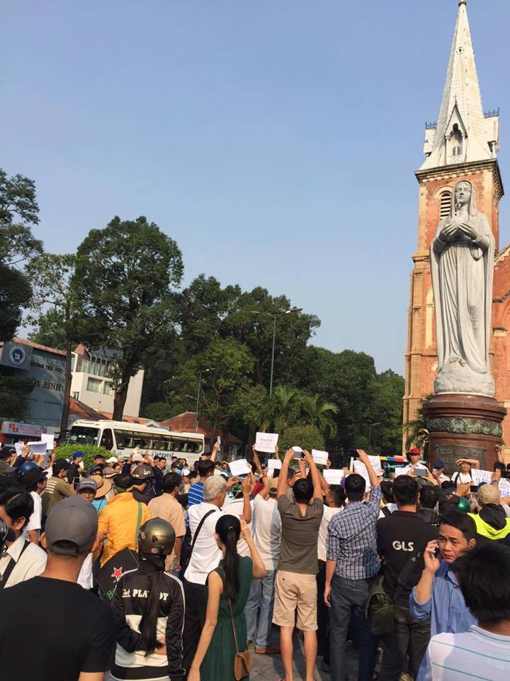 Rất đông người biểu tình tại Sài Gòn đã tụ tập ở khu vực nhà thờ Đức Bà. Lực lượng công an Việt Cộng cũng đã biết trước nên triển khai rất đông tới đây bao vây người biểu tình. Lực lượng công an đã đàn áp và xô đẩy họ lên xe buýt đưa về đồn. Tuy nhiên rất nhiều người đã thoát khỏi sự truy sát của bè lũ công an và tiếp tục cuộc biểu tình của mình.
