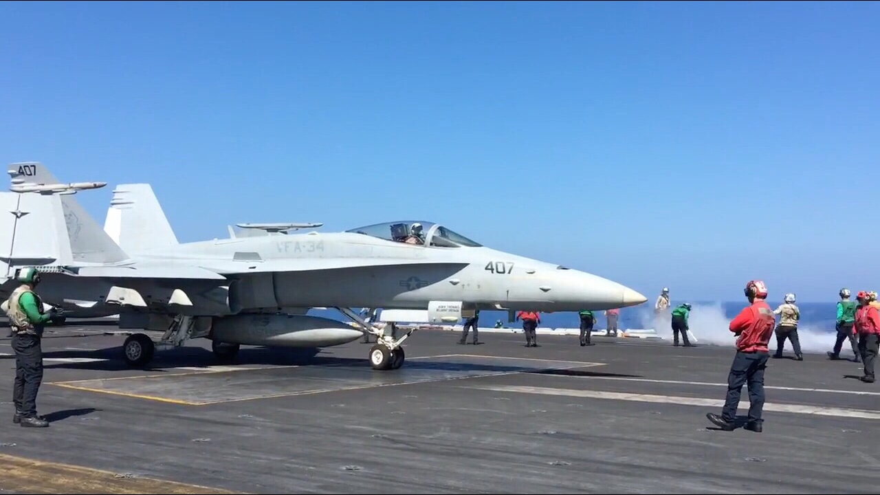 Máy bay F/A 18 xuất kích từ tàu sân bay Vinson