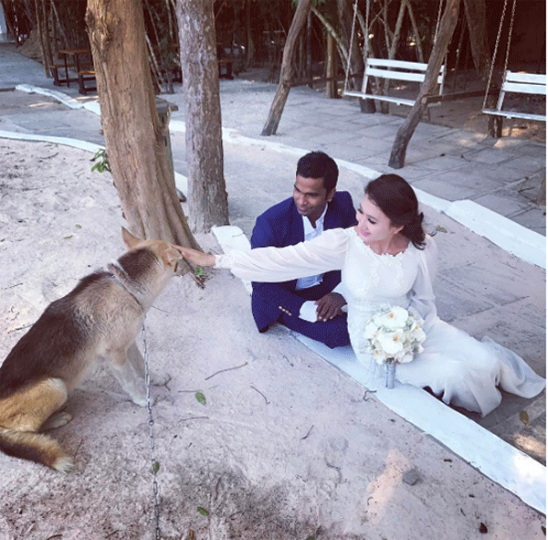Người đẹp cũng không muốn chia sẻ quá nhiều về chồng điển trai gốc Ấn của mình. Chỉ biết rằng, chồng cô là một HLV thể hình tại một trung tâm thể dục có tiếng tại Tp.HCM. Được biết, đám cưới chính thức của cặp đôi này sẽ diễn ra vào ngày 10/3 tại TP.Phan Thiết nhưng mọi thông tin đều được giấu kín chặt chẽ.