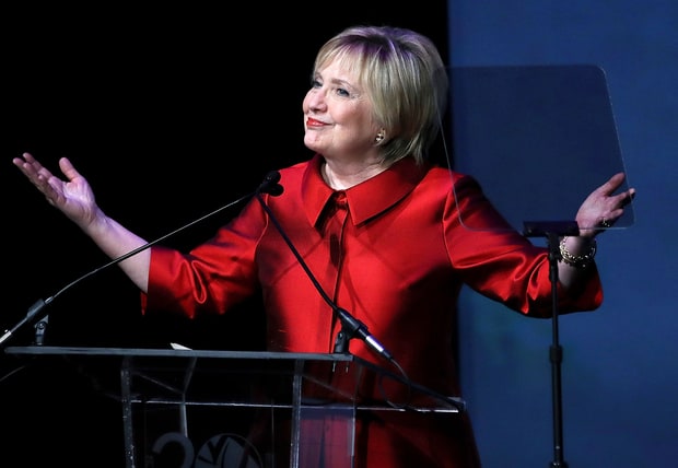 Cựu ứng viên Tổng thống Mỹ, năm nay 69 tuổi, phát biểu trong lễ trao giải thưởng Lãnh đạo toàn cầu với Tiếng nói Chủ chốt (Vital Voices) ở Trung tâm Biểu diễn Nghệ thuật John F. Kennedy ở Washington, DC.