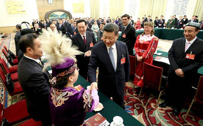 Chủ tịch Trung Quốc Tập Cận Bình tới làm việc với đoàn đại biểu Tân Cương trong thời gian Lưỡng hội. Ảnh: Tân Hoa Xã