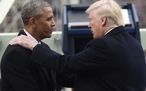 Tổng thống Donald Trump (phải) và người tiền nhiệm Barack Obama. Ảnh: AP
