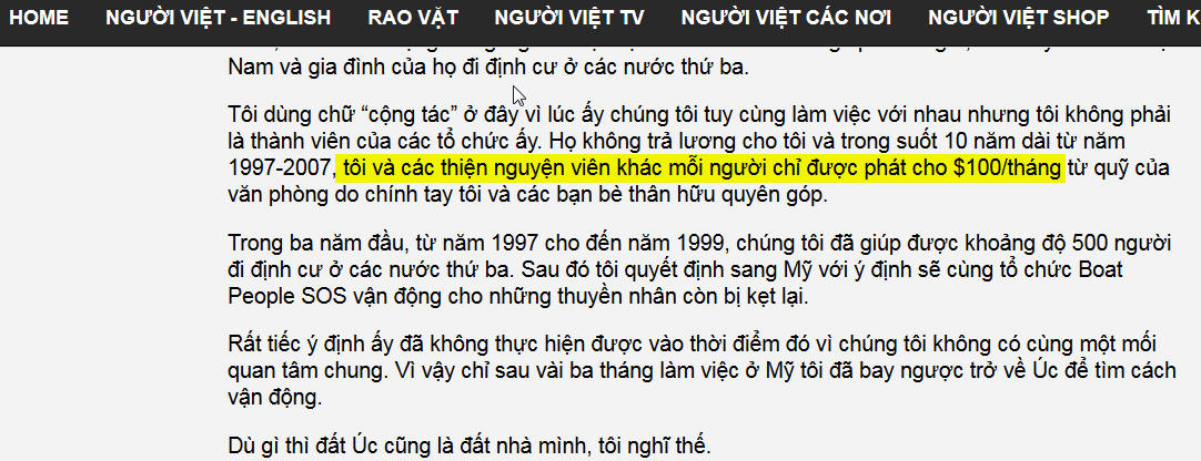 Là một người Mỹ gốc Việt duy nhất phục vụ một cách chính thức trong lãnh vực định cư người tỵ nạn ở Hoa Kỳ từ hơn 40 năm qua, có thể nói một cách không ngượng miệng rằng khó ai có thể qua mặt hoặc lừa dối được tôi trong môi trường hoạt động nói trên. Lịch sử của các cá nhân hoặc hội đoàn tham gia vào việc làm này hầu như tôi đều biết, và có thế biết khá rõ từ tư cách cho đến khả năng, từ sở trường hay sở đoản. Vì thế tôi xin trả lời anh rằng cho đến ngày hôm nay, niềm tin cùng sự ủng hộ của tôi dành cho TH cùng tổ chức VOICE vẫn không hề thay đổi và tôi xin chịu trách nhiệm về lời kêu gọi yểm trợ từ anh và các bạn nếu có chuyện gì xẩy ra!
