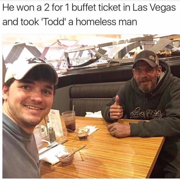 Specht vẫn tiếp tục những hành động giúp đỡ của mình bất cứ dịp nào anh có thể. Đây là khi Specht nhận được một ticket ăn bufet cho hai người, và anh đã dành điều tuyệt vời đó cho một người vô gia cư. (Ảnh: Facebook nhân vật)