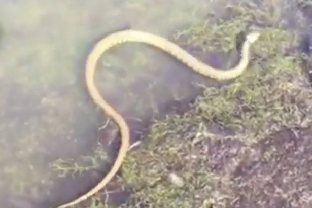 Video trên cho thấy một con rắn đói khát đang rình mò để bắt cá của ngư dân Anh.