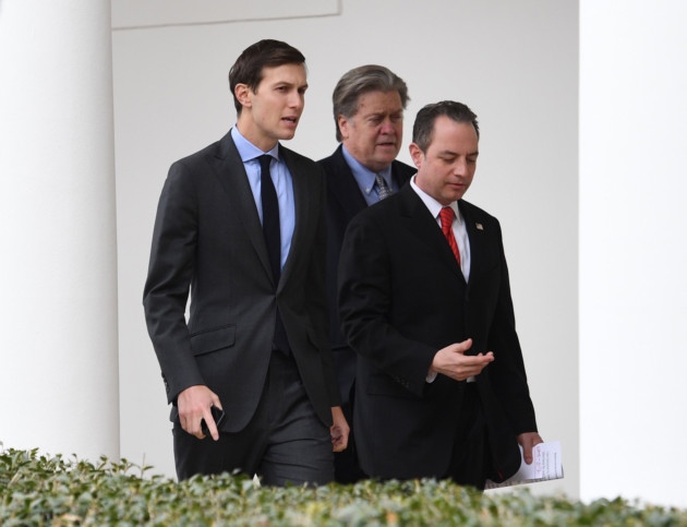 Chánh Văn phòng Nhà Trắng Priebus (đi đầu) đã phải cố gắng kết thúc "chiến tranh" giữa hai cố vấn của Tổng thống là Bannon và Kushner. Ảnh: Getty