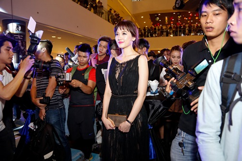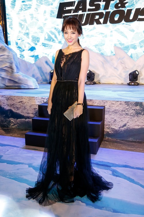Hari Won khiến mọi ánh mắt đổ dồn về mình vì quá nổi bật lấn át các mỹ nhân gợi cảm trong đêm